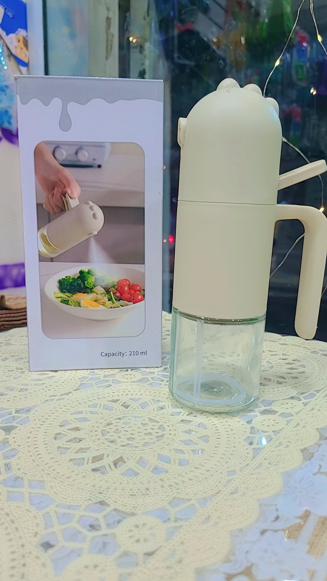 بخاخ الزيت الزجاجي سعة 210 مل هو الحل المثالي لكل مطبخ عصري 👌، حيث يمنحك تحكم دقيق في كمية الزيت أثناء الطهي أو تحضير السلطات. يتميز بتصميم أنيق باللون الأبيض مع جسم زجاجي شفاف يتيح لك رؤية مستوى الزيت بسهولة.
