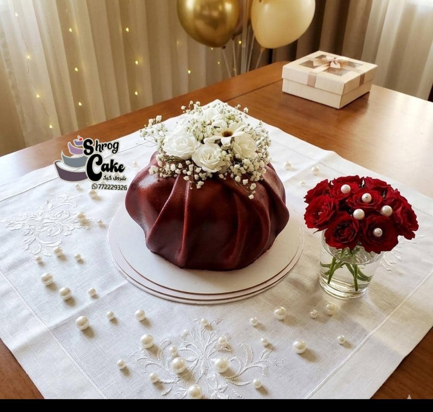 ترتة مميزه بمنظر جذاب تناسب الذوق الرفيق وطعم لا يقاوم بشهادة زبايننا مقاس الترته 15 بداخلها6حشوات الترته مملسة.جناش شكلاه لذيذه ومغلفه عجينة سكر بشكل ورده وع سطحها ورد طبيعي ممزوج مع ورد صناعي بلون ابيض ليطفي للترته منظر جميل نحتفل بحب حلوياتنا مميزه مع روز كيك احجز طلبك الان
