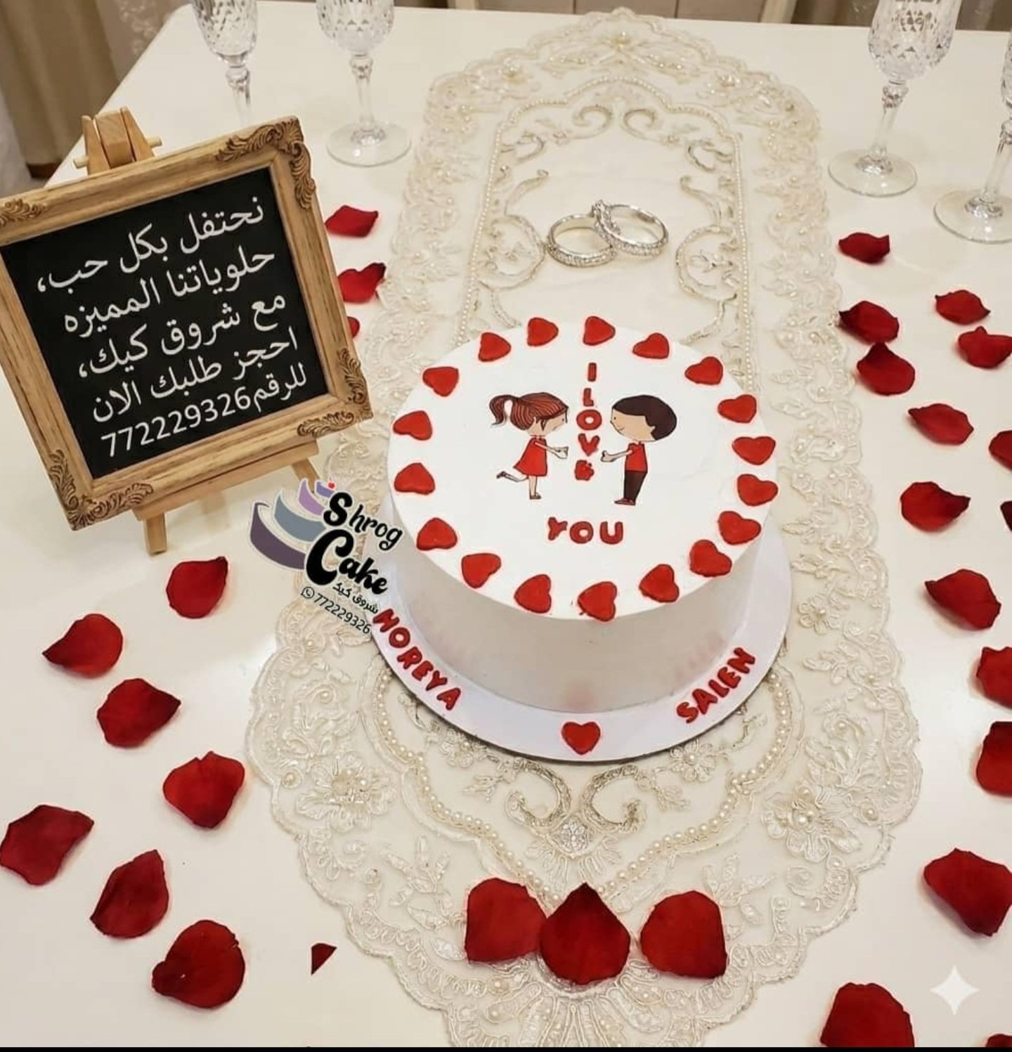 ترتة طريه بمنظر سحري تخلي الكل يسابق يحجز ويفرح في يوم زواجه لا وكمان تعالي شوفي الطعم خياال بشهادة الزباين ترتة.مقاس15 بداخلها6حشوات بتمليس كريمة بطعم مميز وعليها قلوب بعجينة السكر وثيم ع سطح الترته معا نحتفل بكل حب حلوياتنا مميزه مع روز كيك احجز طلبك الان للرقم772229326