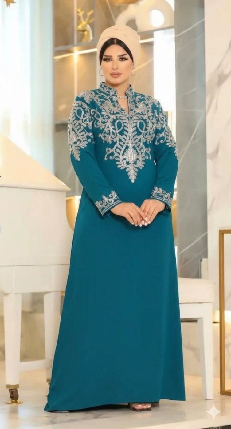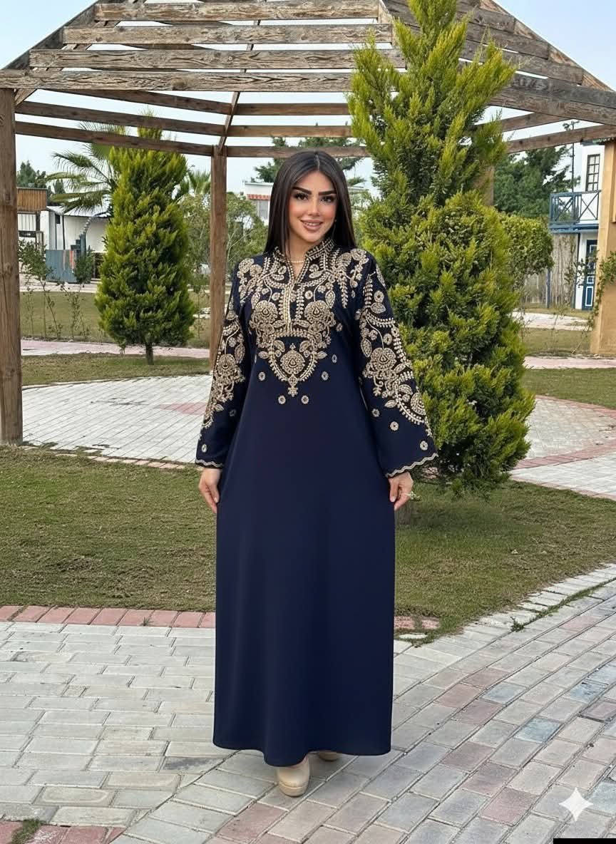 جلابية قطن مصري مع تطريز فاخر بالصدر والظهر والاكمال