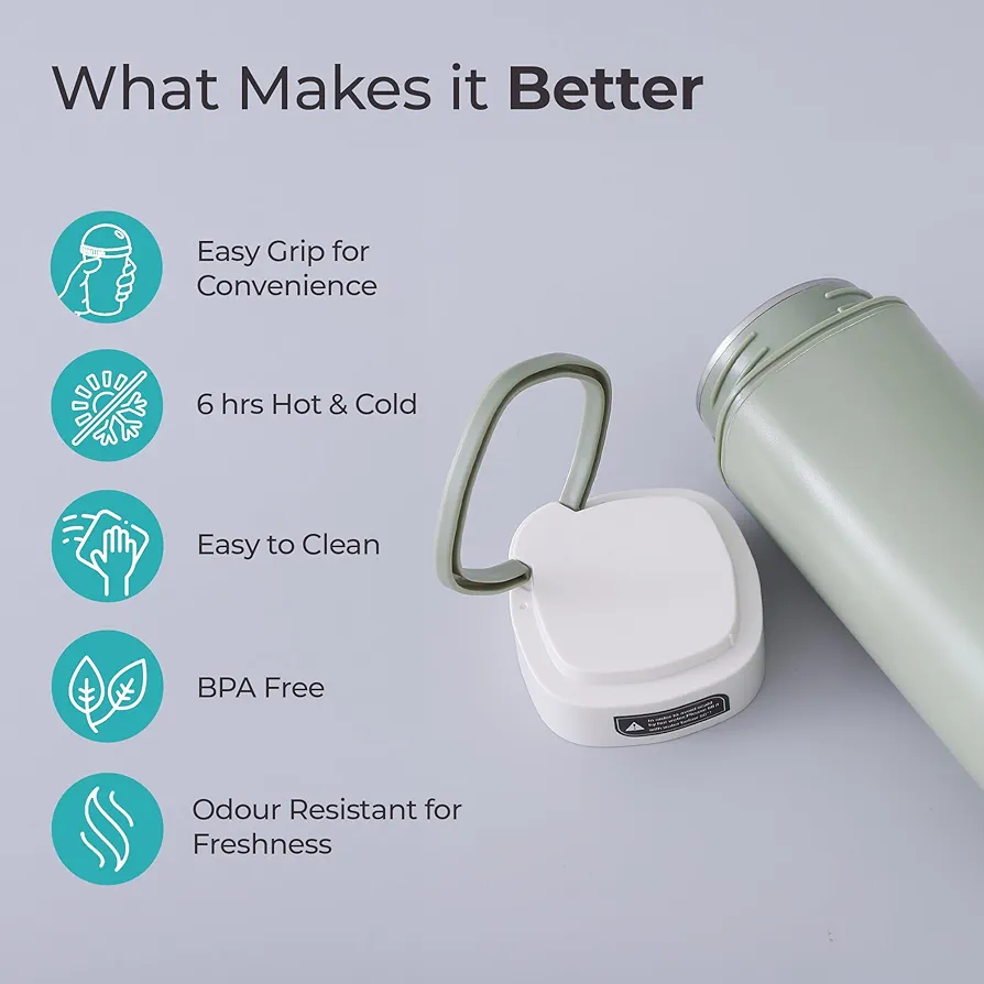 كوب قهوة مناسب للسفر ومضاد للسقوط من ذا بيتر هوم مع قاعدة شفط | 480 مل | فولاذ مقاوم للصدأ | مقاوم للتسرب | كوب قهوة بغطاء ويد| مثالي للسفر والمنزل والمكتب (أخضر)