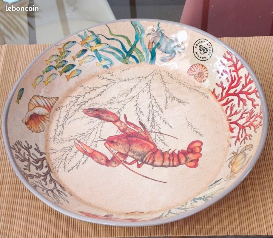 صحن ميلامين كبير بتصميم بحري أنيق، متين وخفيف الوزن، مناسب للاستخدام اليومي والمطابخ العصرية.