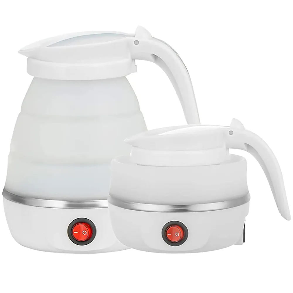 غلاية كهربائية صغيرة محمولة قابلة للطي من السيليكون، غلاية ماء قابلة للطي للتسخين والتخييم، سهلة التخزين مع سلك طاقة قابل للفصل (ابيض)
