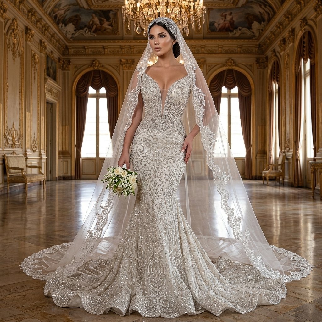 فستان زفاف حرير سهرة دانتل