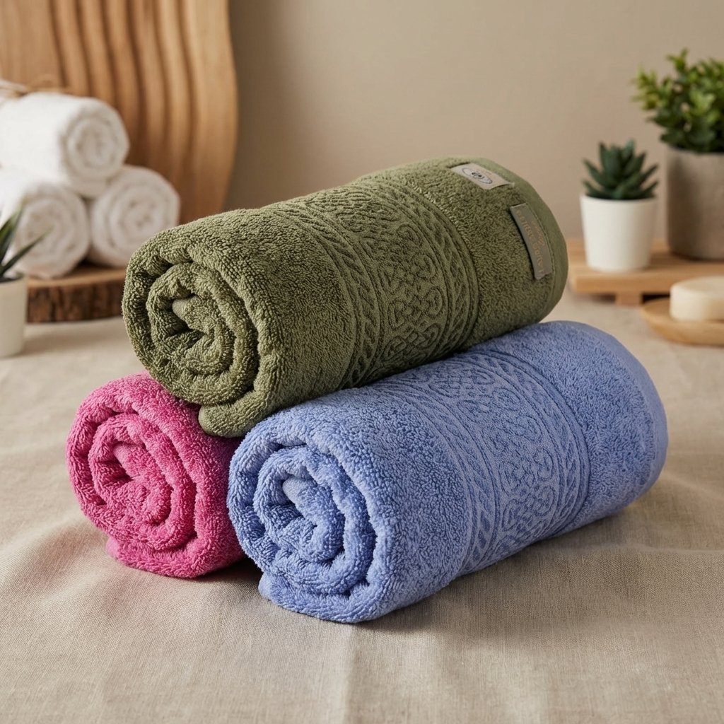 مجموعة مناشف قطنية – نعومة فائقة وألوان عصرية بتصاميم كلاسيكية منقوشة.