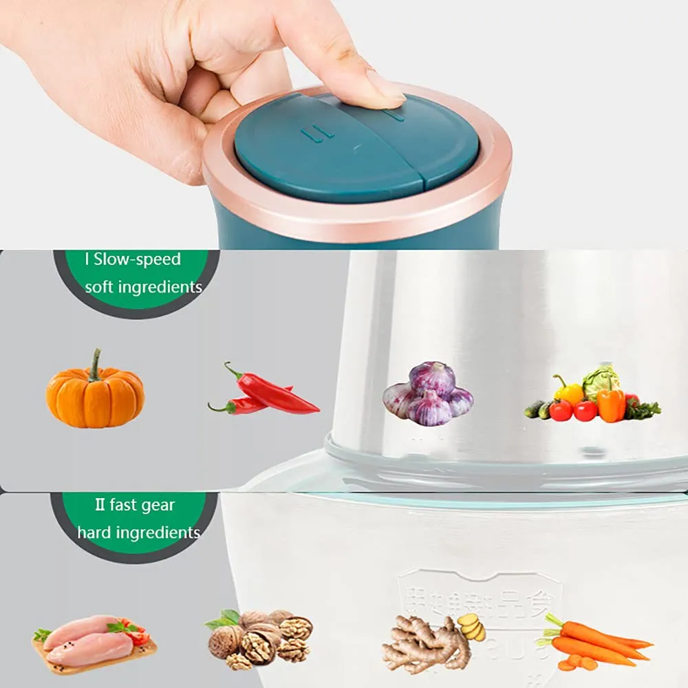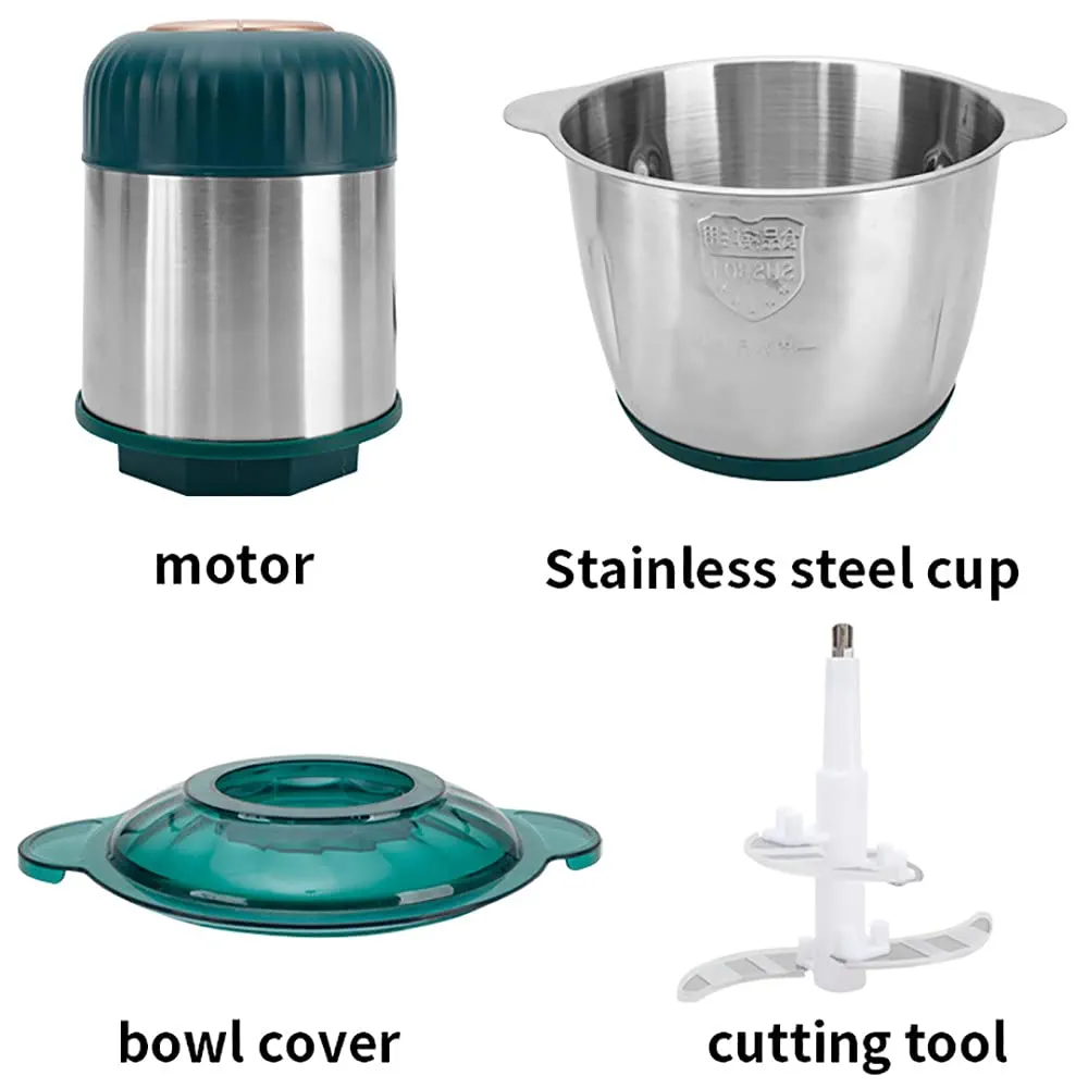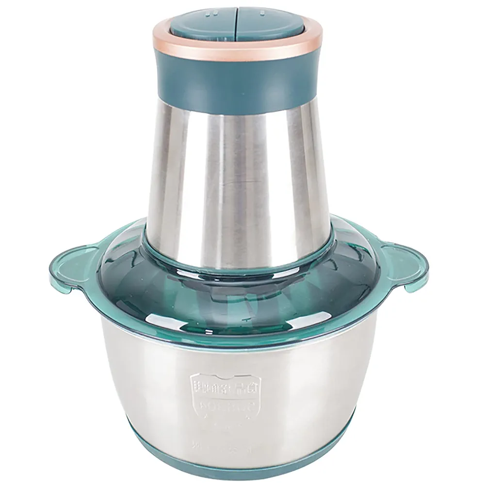 مفرمة لحوم كهربائية سعة 2 لتر، محضر طعام، الة طبخ من الستانلس ستيل، طبقة مزدوجة 4 شفرات، وعاء زجاجي سميك، مناسبة للخضروات والفواكه واللحوم والمكسرات، ستانلس ستيل – بي