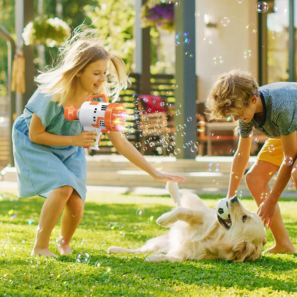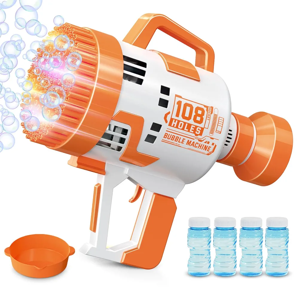 💪 تتضمن العبوة: 1× لعبة مسدسات عملاقة لصنع الرغوة، 1× بطارية 3.7 فولت، 2× زجاجة محلول فقاعات، 1× صينية سائل فقاعات.