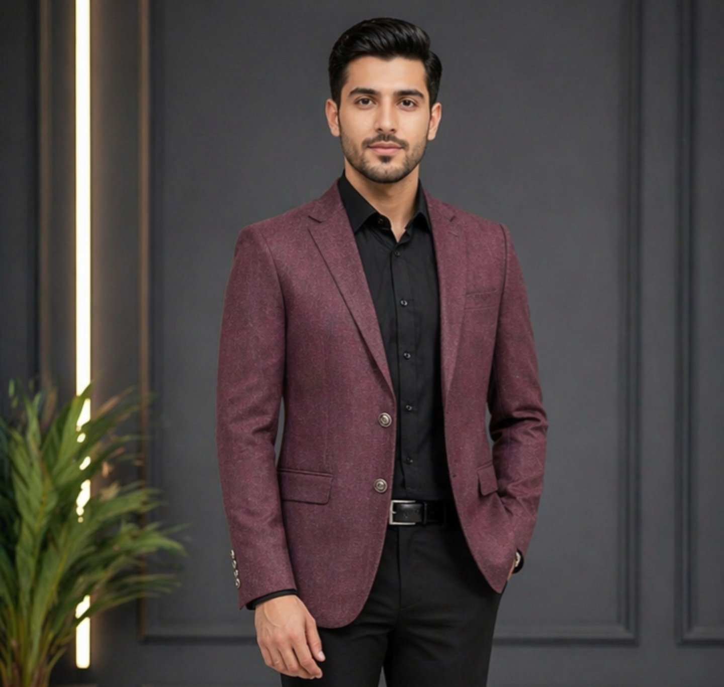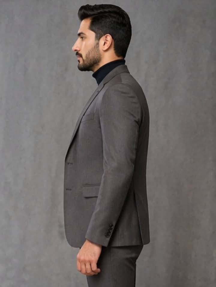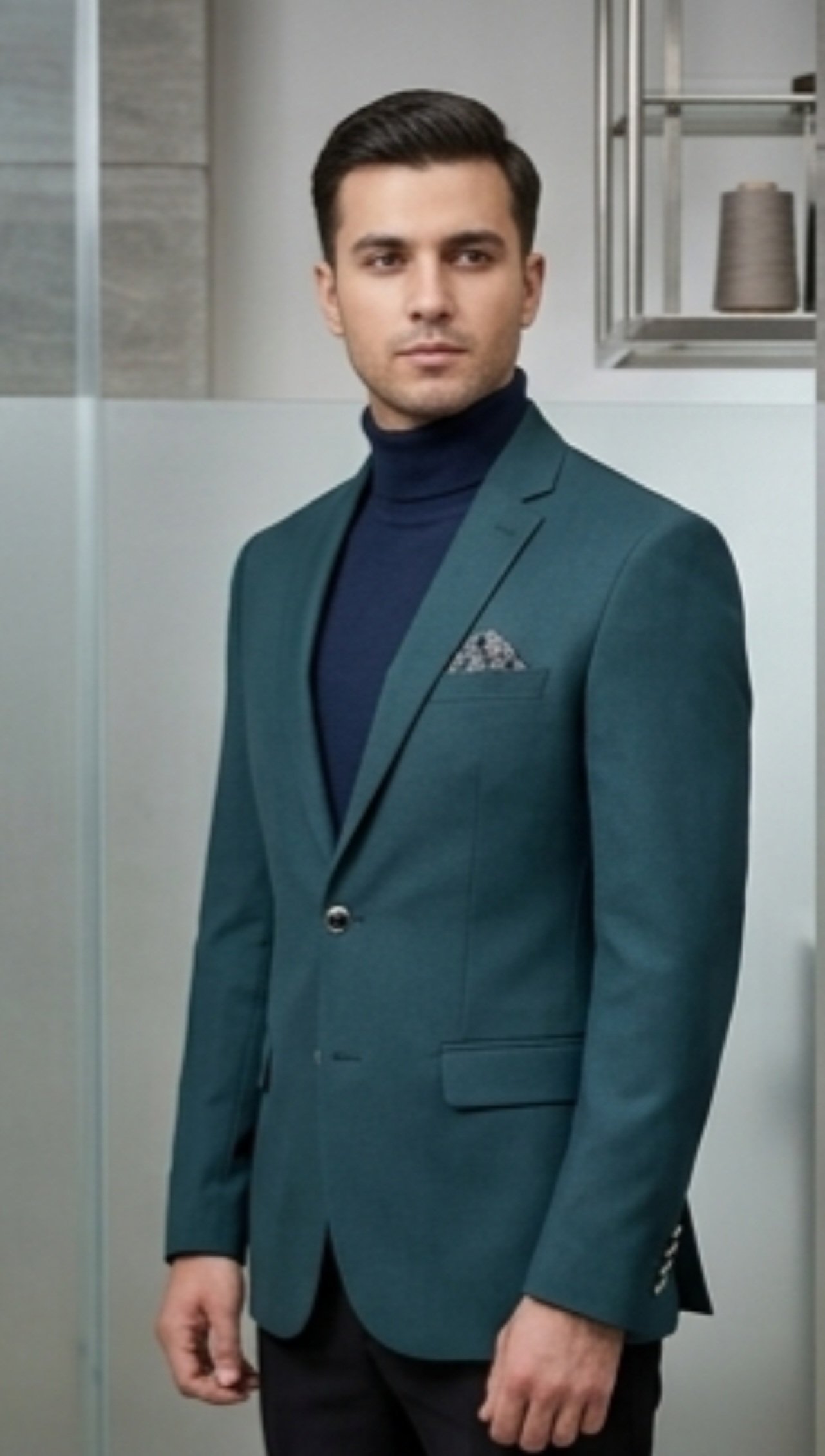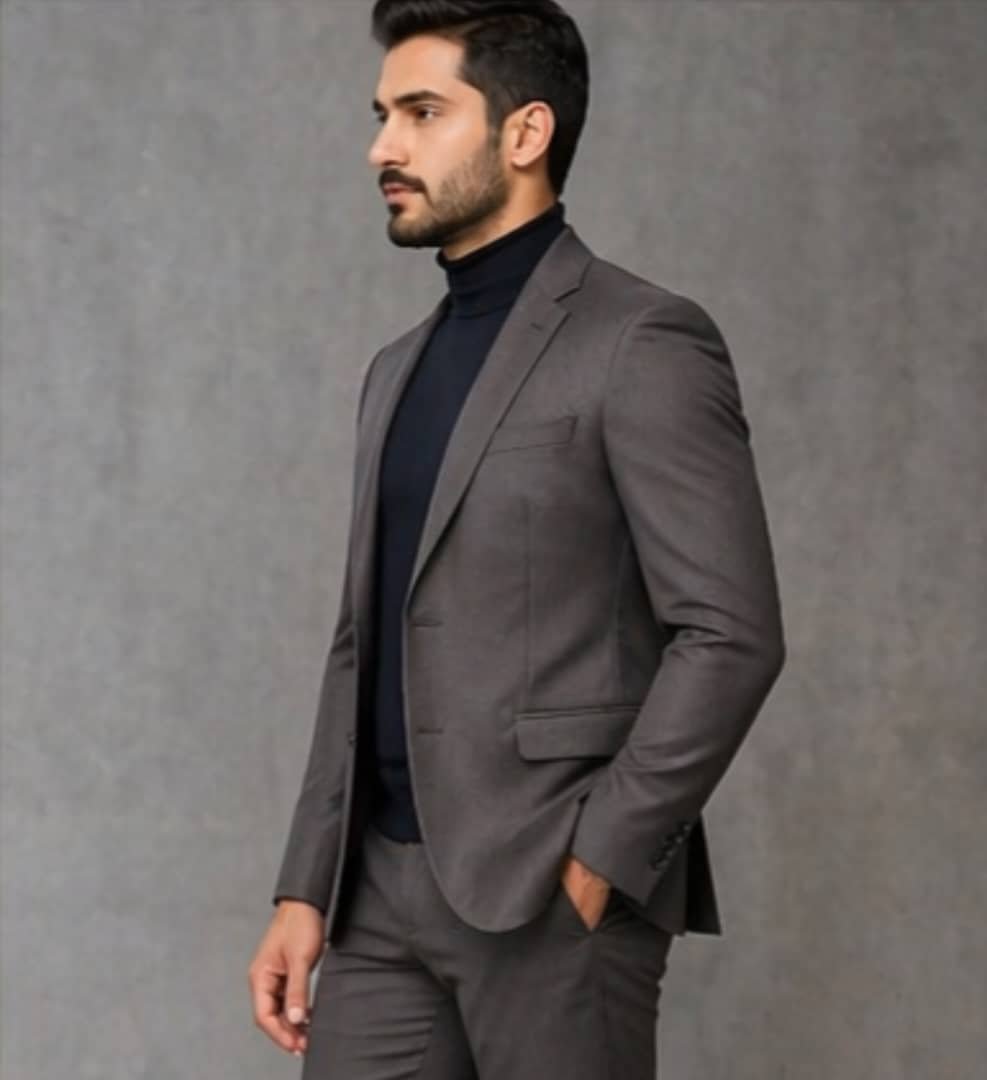 تجسد هذه الإطلالة مزيجًا مثاليًا من الأناقة الكلاسيكية واللمسة العصرية، حيث يرتدي الرجل بليزر بنقشة كاروهات متناسقة بألوان رمادية دافئة تضيف عمقًا بصريًا وجاذبية راقية. تم تنسيق البليزر مع قميص بياقة عالية (تيرتل نِك) بلون داكن، ما يمنح الإطلالة طابعًا أنيقًا ومريحًا في الوقت ذاته. يظهر التصميم بخطوط نظيفة وقصة متقنة تبرز القوام بشكل جذاب دون مبالغة. الخلفية المكتبية الفخمة، مع الإضاءة الدافئة والخشب المصقول، تعزز الإحساس بالفخامة والرقي، مما يجعل هذه الإطلالة مثالية للاجتماعات الرسمية أو المناسبات الراقية التي تتطلب حضورًا مميزًا وواثقًا.
