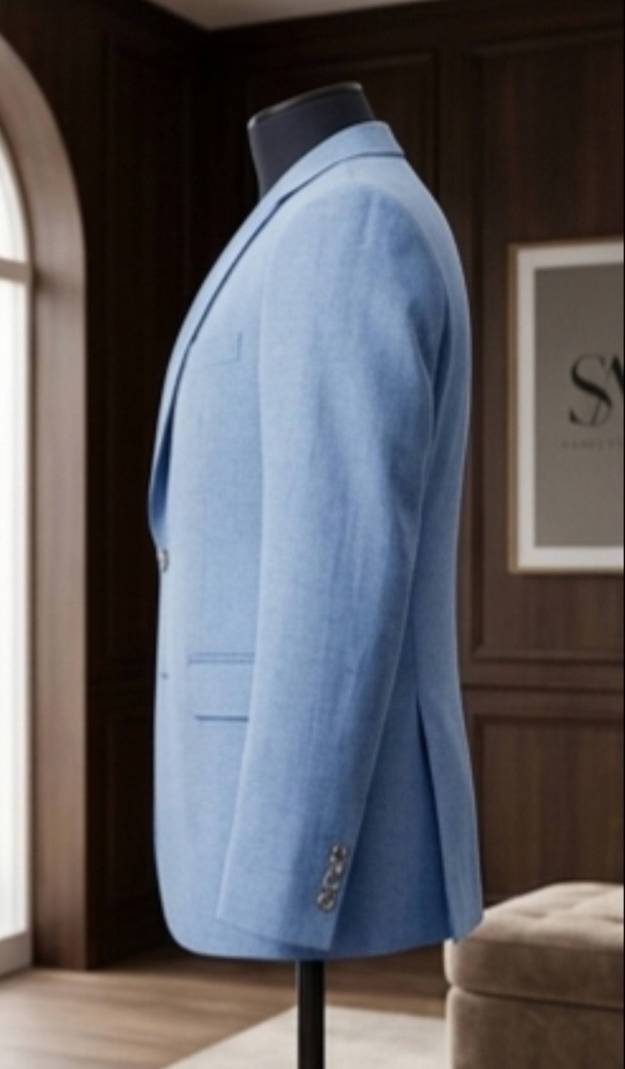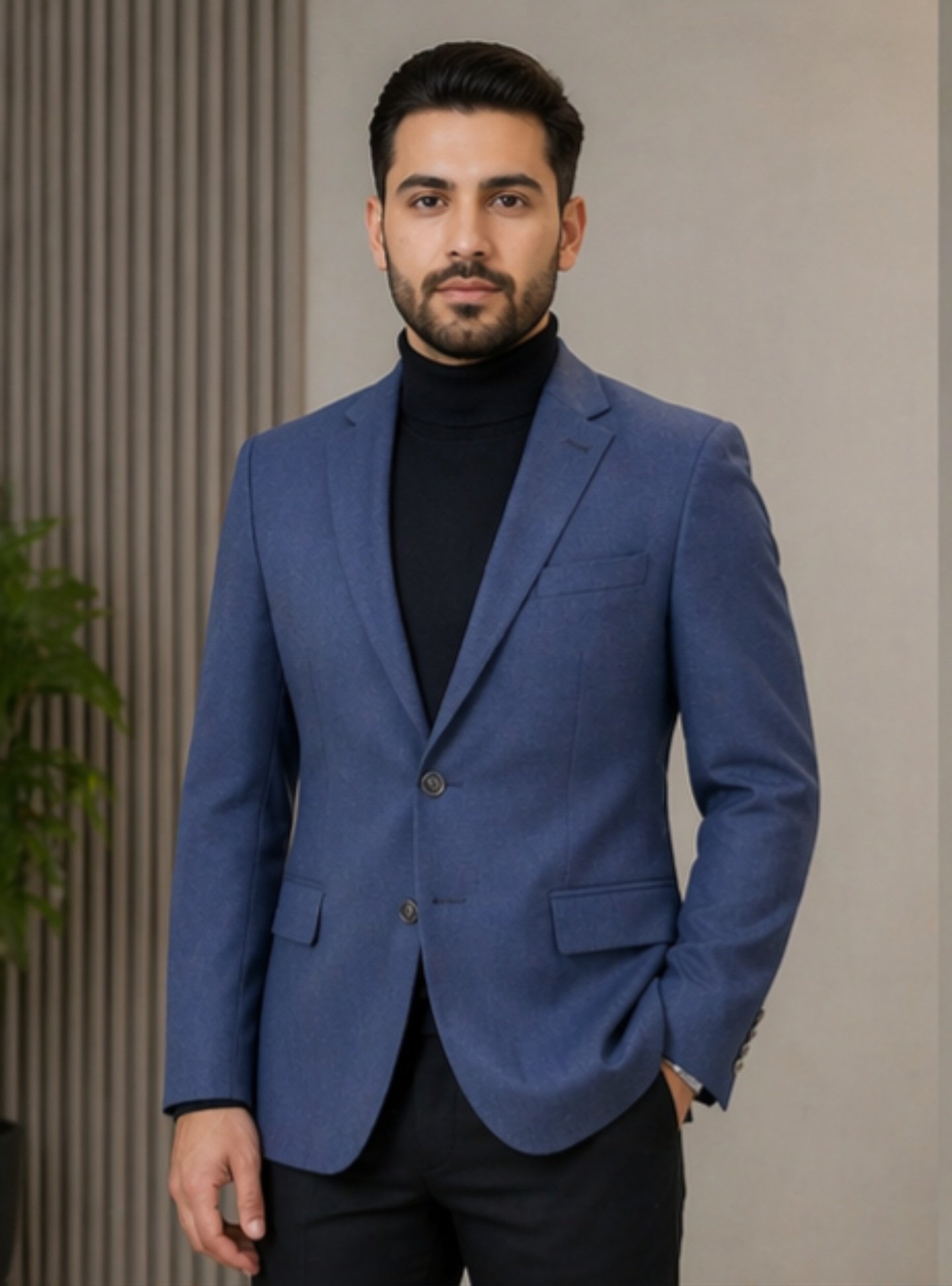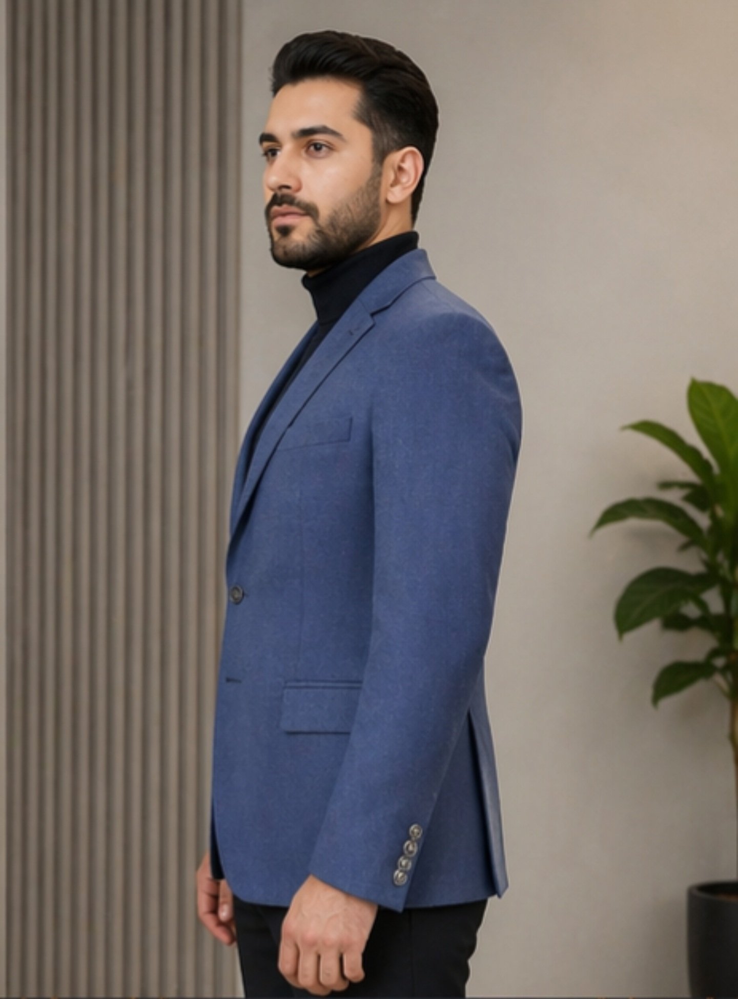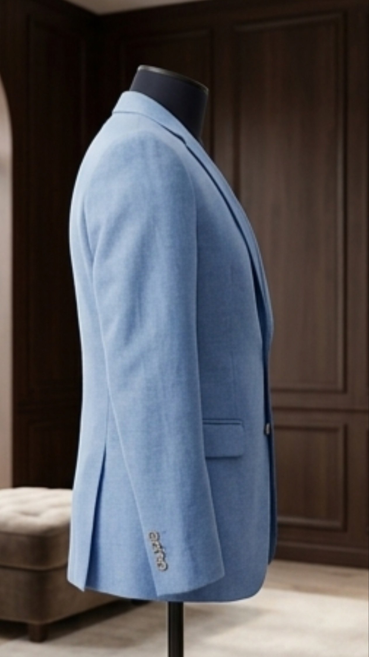تُجسّد هذه السترة الرجالية مزيجاً مثالياً بين الأناقة الكلاسيكية واللمسة العصرية، حيث تأتي بلون أزرق فاتح هادئ يعكس الذوق الرفيع والتميز. صُمّمت بقصّة متقنة تبرز تناسق القوام، مع ياقة حادة تضيف لمسة رسمية جذابة. تتميز بأزرار أمامية أنيقة وجيوب جانبية بغطاء، مما يعزز من طابعها العملي والفاخر في آنٍ واحد. القماش يبدو ناعماً وعالي الجودة، ما يمنح إحساساً بالراحة عند الارتداء مع الحفاظ على المظهر الأنيق طوال اليوم. يمكن تنسيقها بسهولة مع بنطال رسمي أو حتى مع إطلالة شبه كاجوال لإبراز أسلوب عصري أنيق يناسب مختلف المناسبات.