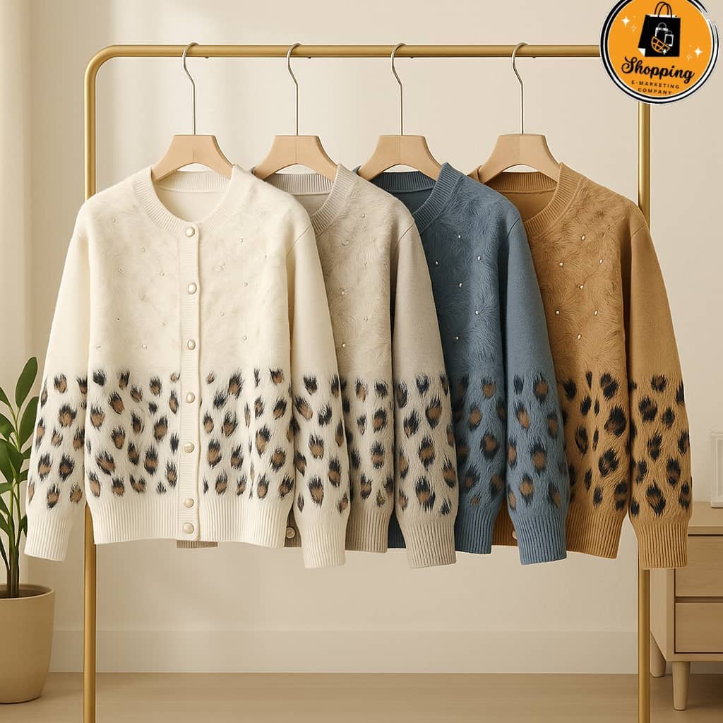 *خلي إطلالتك مميزة مع كارديغان الشتاء الراقي، المصمم بخامة ناعمة ودافئة بلمسة من الأناقة. يتميز بنقشة جلد الفهد العصرية الممتدة على الأكمام وأسفل القطعة، مع تفاصيل كريستالية صغيرة تضيف لمسة أنثوية فاخرة.*
