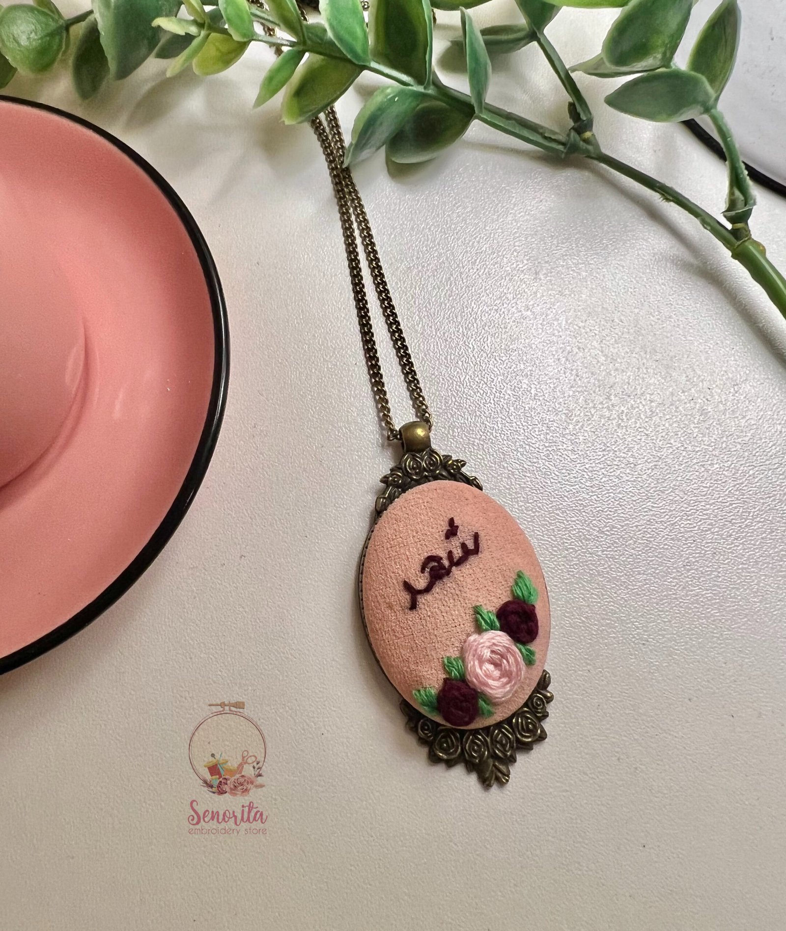 سلسال تطريز اسم مع ورد بالوان الوردي